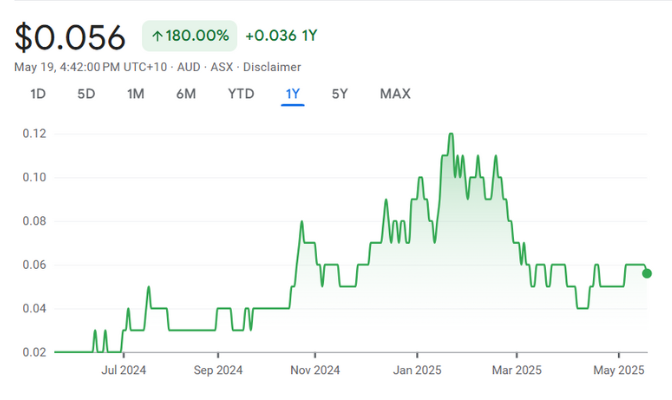 As of 16 May 2025, Adisyn Ltd's share price is $0.059.
