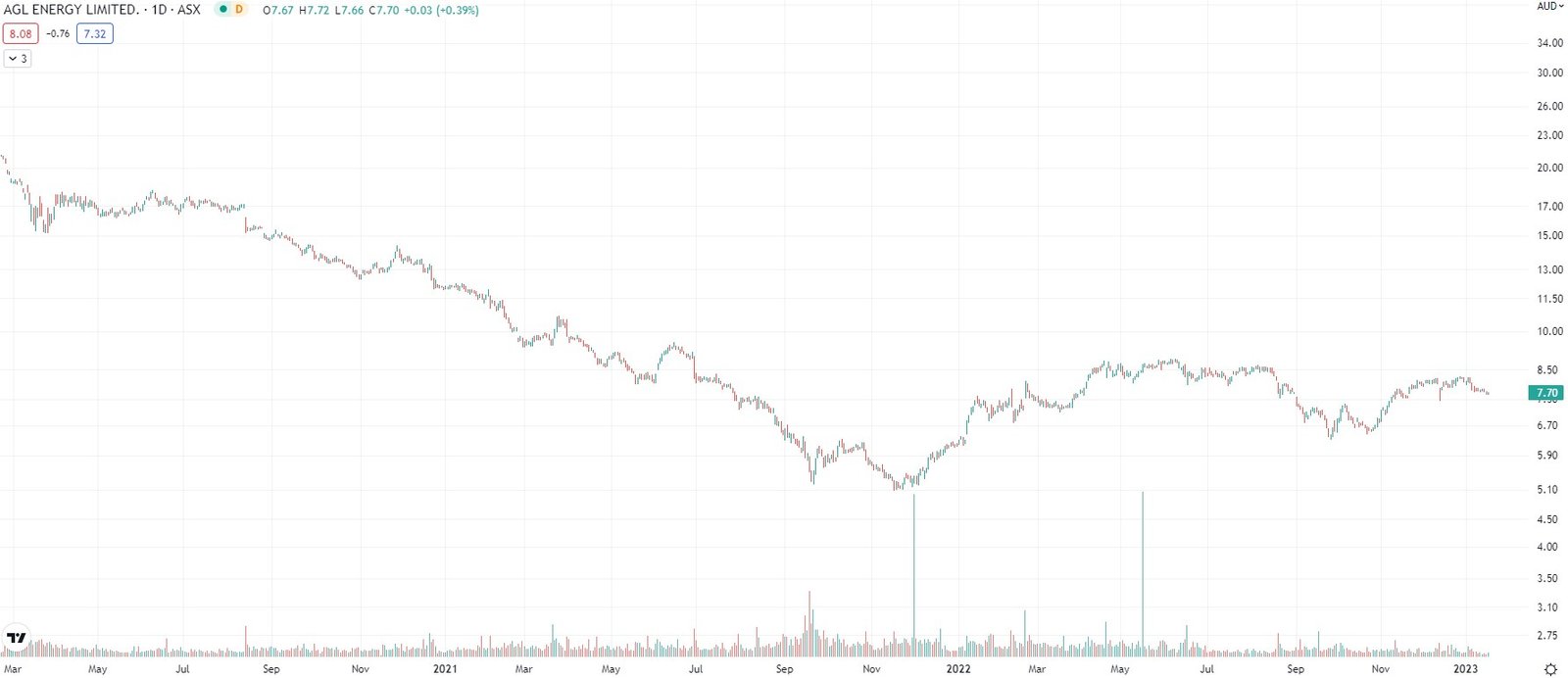 AGL shares are actually up 5% in the last year. The share price is down 66% from pre-Corona Crash heights, however.