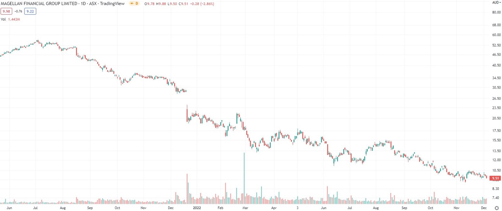 Exactly 12 months ago, poster-child ASX investment company Magellan (ASX:MFG) had $116.4bn in FUM – $30.2bn retail and $86.2bn institutional. This morning, it gave a trading update revealing it has $50.2bn in FUM – $20.6bn retail and $29.6bn institutional. Ouch.