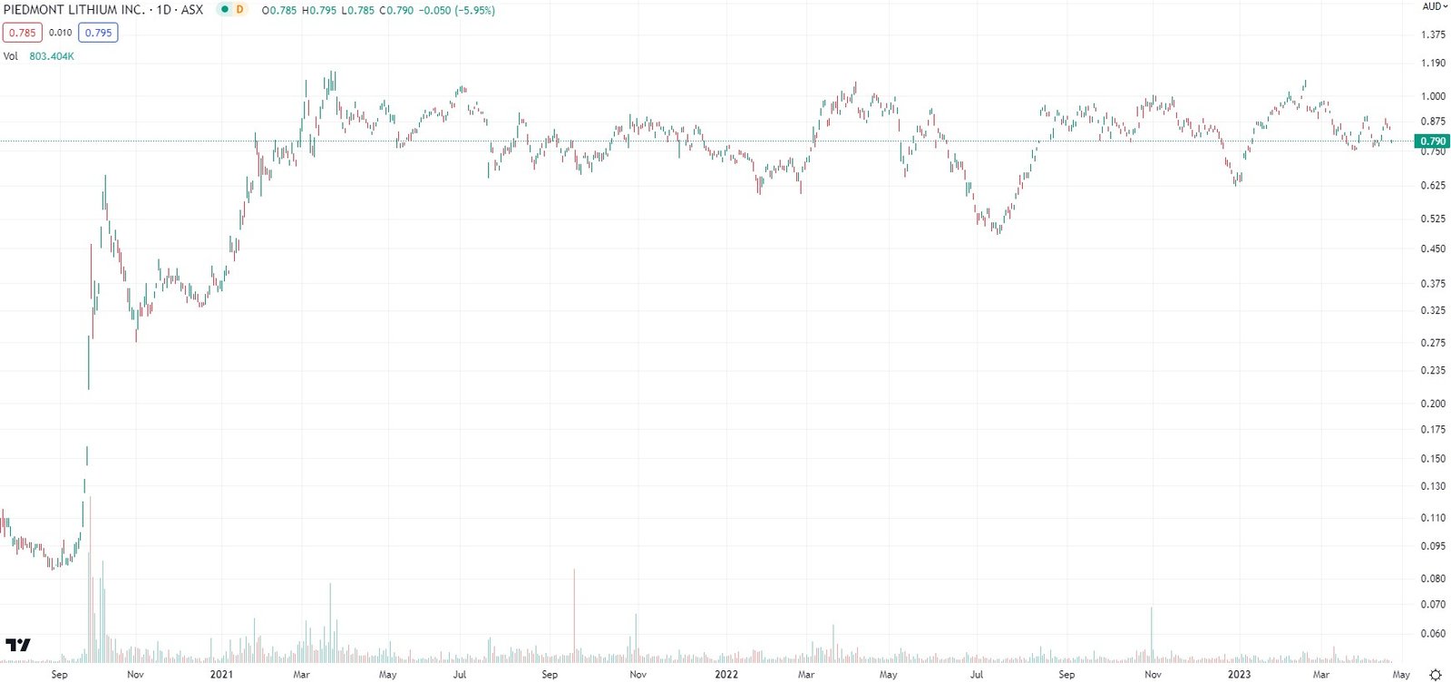 Piedmont (ASX:PLL) share price chart, log scale (Source: TradingView)