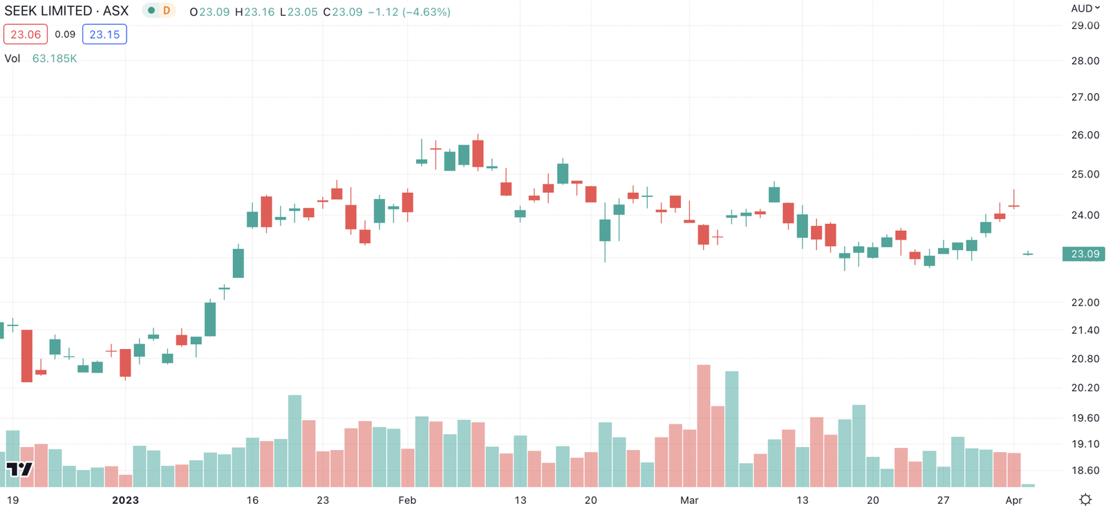 Seek revenue guidance for FY23 downgraded by 1.2% and shares fall by 5%