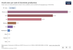 What is often overlooked in this debate is how nuclear power compares on a like for like safety basis. When you measure death rates per unit of energy produced, brown coal sits among the highest, while nuclear ranks among the lowest. That is a striking comparison. Based purely on energy output, nuclear is statistically one of the safest large scale power sources available, despite the fear it attracts.
